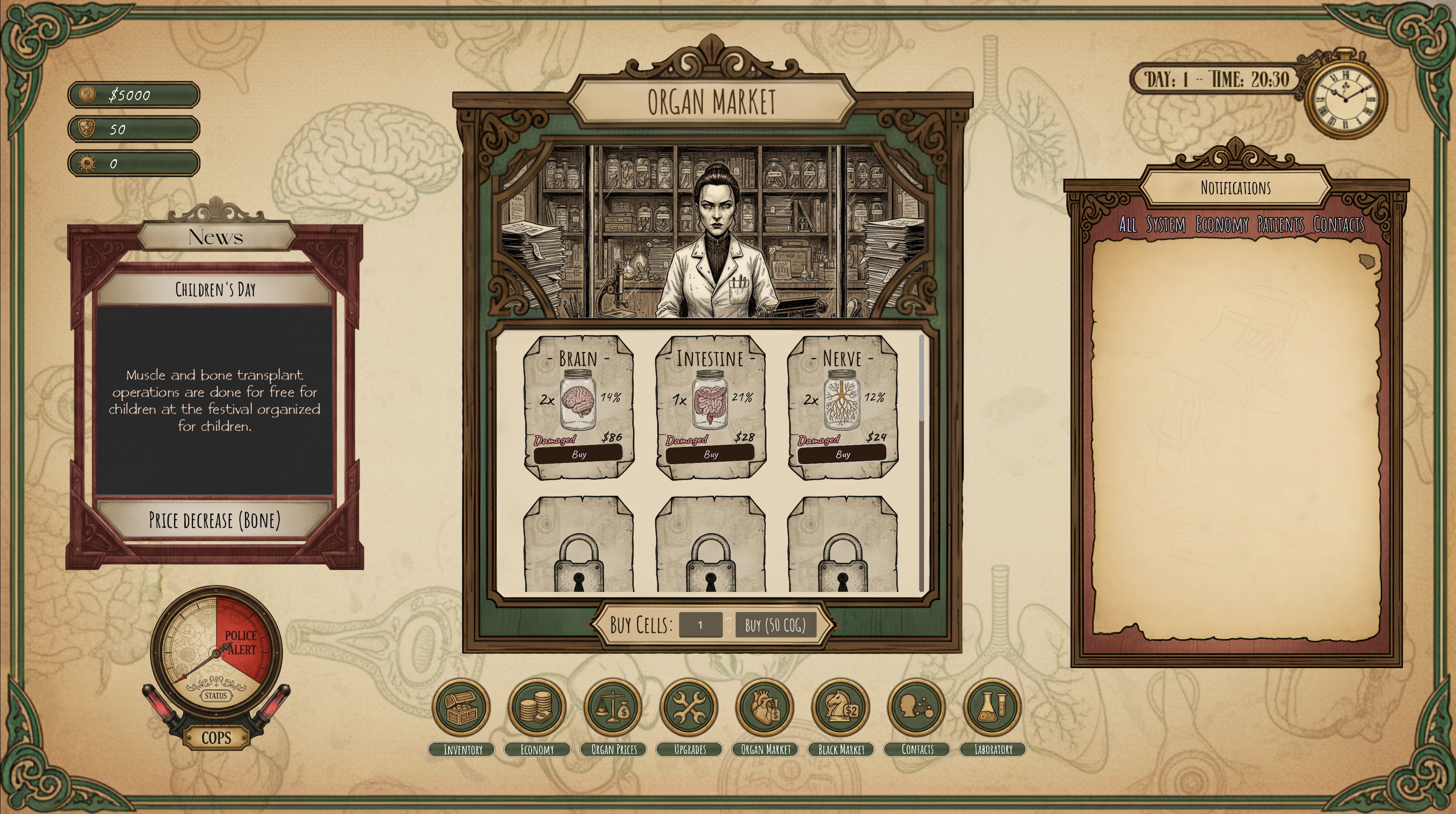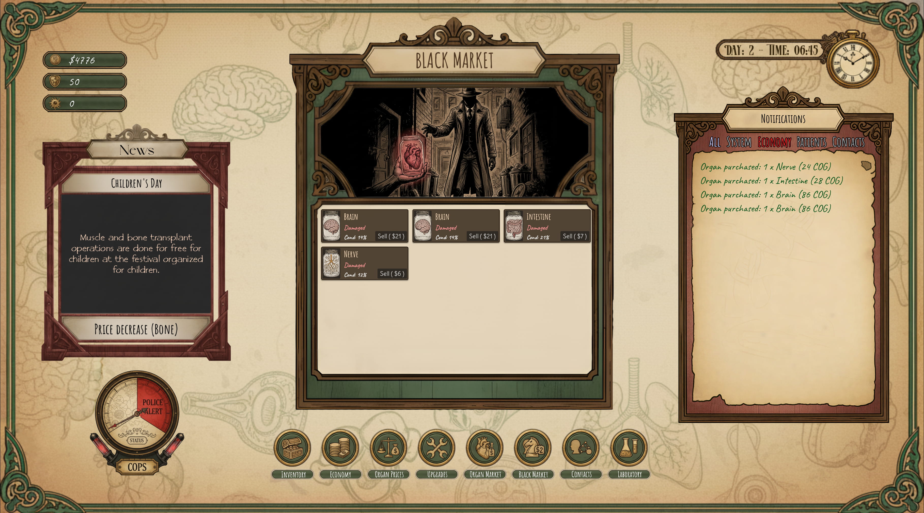Scavenge, sell, and survive in a decaying steampunk world where organs are the hottest currency — and ethics are very much optional. From shady clients to black market deals, every body part has a buyer… and a price.